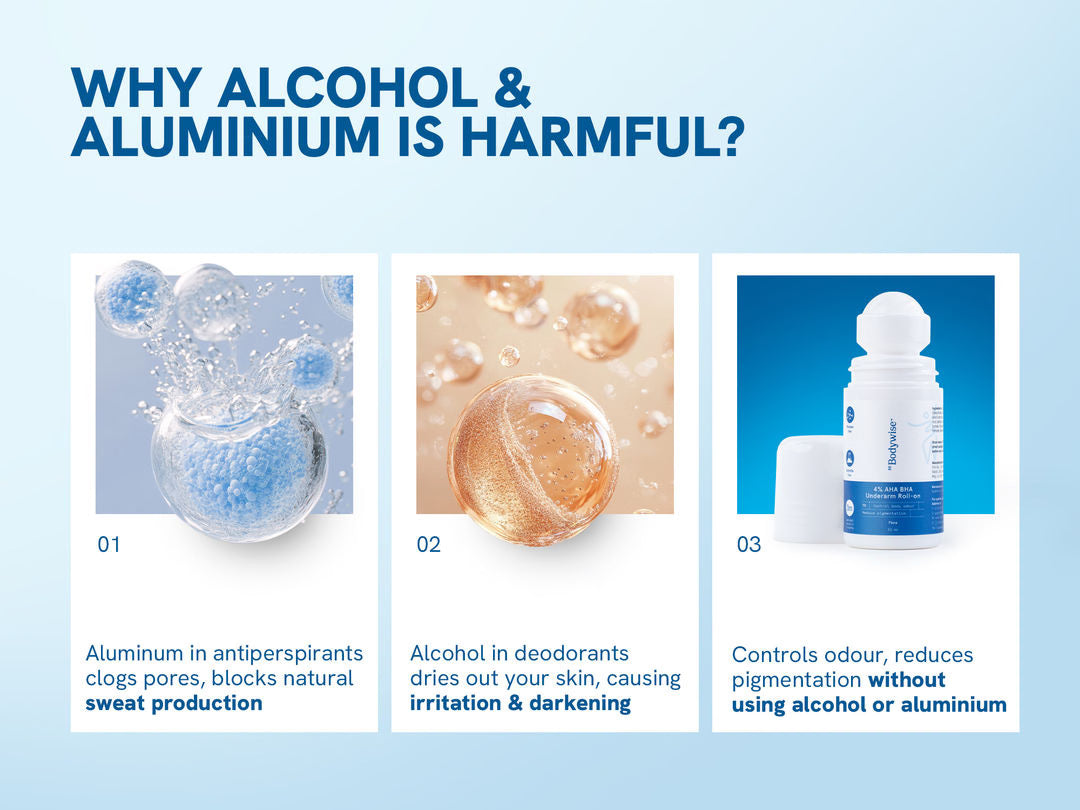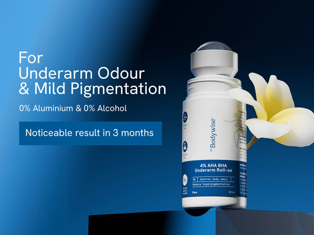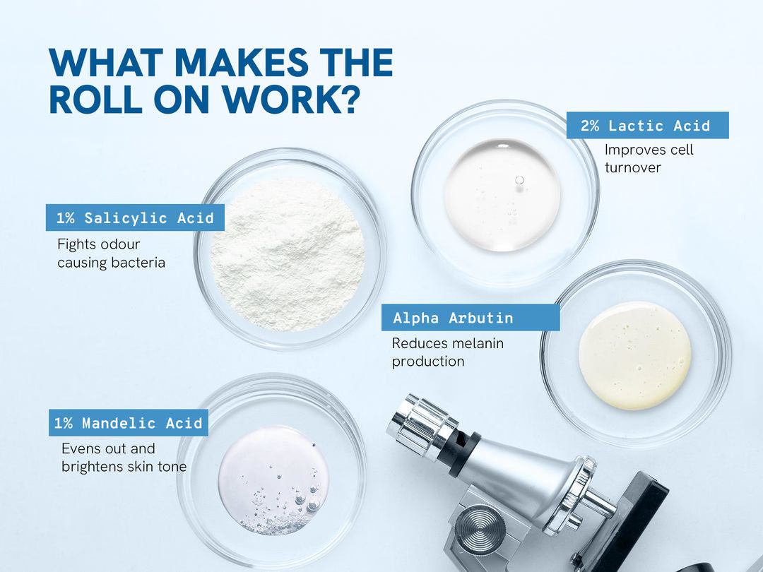 Our 4% AHA BHA Underarm Roll On is 100% safe with 0% Alcohol & 0% Aluminium. It helps to: